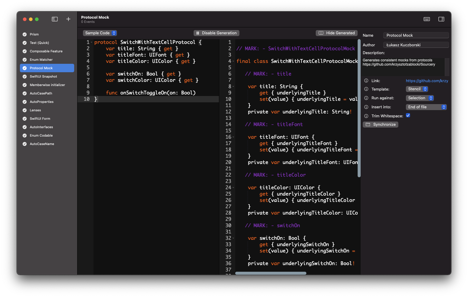 If you still didn’t check it out, you really should as it can save you 100+ hours by letting you automate a lot of repetitive code in your projects, from writing mocks through SwiftUI and Snapshots.