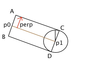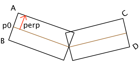 - perp is perpendicular to segment direction ( -y, x of direction ), if we normalize it we can use it to create ABCD coordinates, simply by multiplying it by our desired width and either adding or subtracting from our base points p0, p1