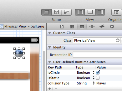 - Set custom class to PhysicalView, make it a square rect