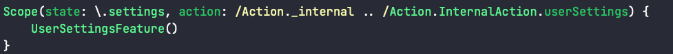 Scope(state: \.settings, action: /Action.InternalAction.userSettings) {